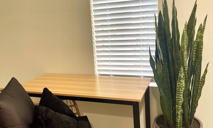 Relax in picturesque Bakersfield in this cozy retreat features 1 queen bed, 1 restroom with resort style shower, and essential amenities like a fully stocked kitchen, washing machine in unit, heating, AC, and WiFi. Whether you're traveling solo or with a companion, this enjoyable space offers everything you need for a pleasant stay. You're sure to make fantastic memories with a stay at our place!