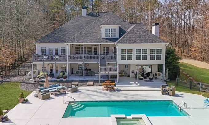 Best-rates for the Serenity Farms Hiram starts from $802 per night with includes TV, Private Pool, Security/Safety, Wellness Facilities, Fireplace/Heating, Barbecue/Outdoor Cooking, Parking, Air Conditioner, Balcony/Terrace, Accessibility, Spa, Internet, Kitchen, Laundry, Bedding/Linens, Guest Services, Child Friendly, Hot Tub, Pool with all other amenities. Perfect for Weddings is committed to ensuring every guest experiences a comfortable and extraordinary stay, whether planning a romantic getaway, a honeymoon, a pet-friendly stay, or celebrating with the entire wedding party.
