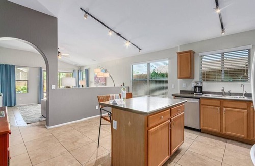 Made with friends and family in mind, this lovely Gilbert home is the perfect home base for all your Phoenix area adventures! Located in a quiet neighborhood away from the busy vacation spots, this 3-bedroom, 2-bathroom home provides a fully equipped kitchen, a formal dining room, and a plentiful outdoor living space. Venture out for a day filled with desert hiking, golfing, and visiting the hot spots. Return to your home-away-from-home for a backyard cookout and enjoy the cool pool water.