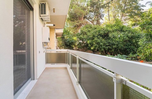 Fully renovated 2‑bedroom apartment in Kifisia, Athens | Sleeps up to 5 | 7‑min walk to Kifisia Metro | Free private parking & fast Wi‑Fi | Stylish interiors + garden‑view balcony | Ideal for families & business stays