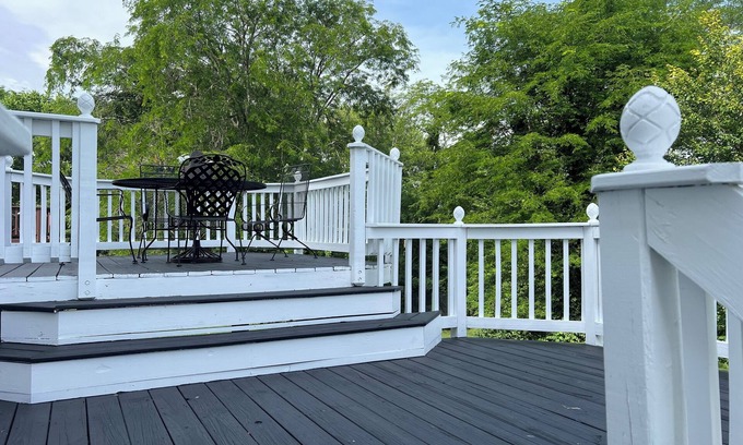 This home has all the comforts you need and more. Nestled on a cul-de-sac with large double deck, high ceilings, large kitchen area and full laundry room. Relax with the whole family for work or play. Bring your favorite massage oils to use our massage table.