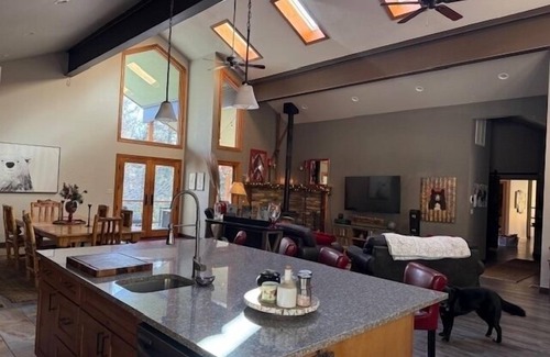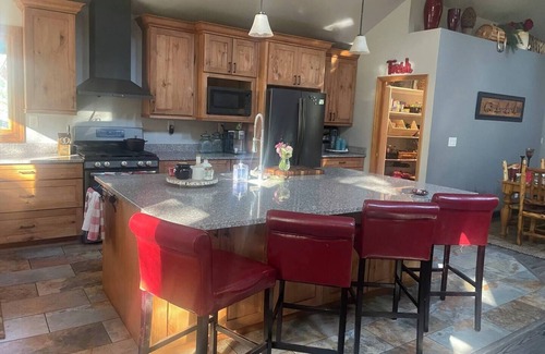 Home Baked Bread and coffee is provided in the morning.Lunches for your outdoor adventure can be arranged as well as a home cooked meal when you return from your adventure. (additional fee upon request) Or cook in the gourmet kitchen that includes every pot,pan,spice or gadget you desire.Large Hot Tub for viewing the stars. Gorgeous Huge Windows to watch the snow & wildlife The woodstove is a cozy way to warm your toes and heart. You have access to the entire home except the Master Suite & Bathroom. The master suite has a barn door and is locked. Host may or may not be onsite in the master suite. The master suite has a separate entrance. Host may also be working on the outside of the property or the garage.
