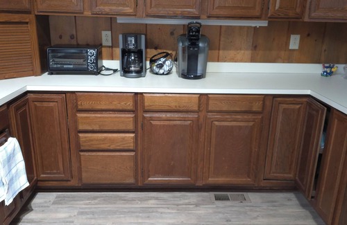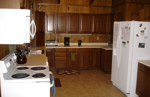 Bring the family to Serenity on the Blue Ridge Parkway and enjoy all the comforts of home with all the amenities for the outdoorsman. Walk out the door for some of the best hiking in the state at Stone Mountain State Park or go down to the New River and enjoy canoeing and kayaking and while you’re at it get in some golf at the New River Country Club (other clubs nearby include High Meadows Golf & Country Club, Roaring Gap Golf Course, Olde Beau Golf Club, Deer Creek Golf Course and Stone Mountain Golf Club). For those that just want to relax, enjoy some of the finest wineries in the state in the Yadkin Valley Wine Country or do some antiquing in the numerous antique shops in the area. Sparta and surrounding area enjoy some of the finest Bluegrass music in the world with Merlefest happening every year just down the road In Wilkesboro, NC or at the Muddy Creek Café and Music Hall in Sparta. Have a rest day before you start Cycle North Carolina "Mountains to Coast" Bicycle Ride in October or before you ride the Parkway. When you are finished with all of that just sit in one of the rocking chairs on the huge deck and watch the view go by or tune in a movie on the 55 inch Smart HDTV with free Sling TV, NETFLIX and Amazon Prime video, Free WiFi internet and a 200 DVD video library. Put out some deer corn and watch the deer come up and feed just outside your door and hear the turkey gobble as they walk by. Everything you could want is at your beckons call. Initially built to accommodate 2 golf foursomes this 2400 square foot, 4br (2 Master Suites), 3.5 bath home makes the perfect vacation spot for families or group of friends. One of the Master suites is on the main floor so those with mobility impairments won't have to contend with any stairs to enjoy the deck, family room, dining room, kitchen, and private bath. The full kitchen has all the cooking utensils a cook would need including an outdoor gas grill. This is your spot. Make it your home away from home.
