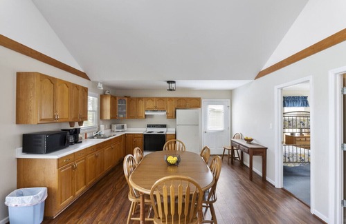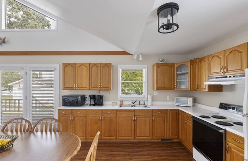 Set all on one floor, this lovely home by the water is ready to host your lakeside getaway. Take in fresh air out on the furnished deck, or relax in comfort in the central air conditioning inside. The main bedroom features an en suite bathroom with a standalone shower, so getting ready will be a breeze. You'll be able to start relaxing immediately when you come back - just set your lake clothes to go in the private washer/dryer. The open kitchen is fully equipped with everything you need to cook up tasty and delicious meals, and there's plenty of space to sit together! The flatscreen TV in the family-friendly common area also features a DVD player, so you'll be able to watch your favorites together at night. Of course, lake views come standard at this home!