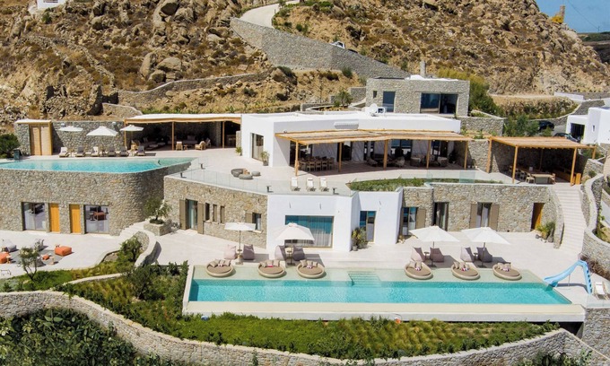 Serenity Psarou Estate - A top-luxury, ultra-exclusive, 7-star villa in Mykonos has 8 Bedrooms , 9 Bathrooms, and max occupancy of 18 people. The minimum rental for this property is 1 nights, but this can change depending on the season you plan on staying. Previous guests have given good rated it, and VRBO labeled it a top-rated Villa because of the excellent services rendered by the owner or manager of this Villa, and has consistently provided great experiences for their guests. Most families or guests that use it recommend it to their friends and some of them are repeat guests. Villa has a friendly neighborhood, and the Psarou has interesting places to visit. If you want to learn more about the Villa in Psarou, such as places to visit and things to do nearby, you can check below to learn more.
