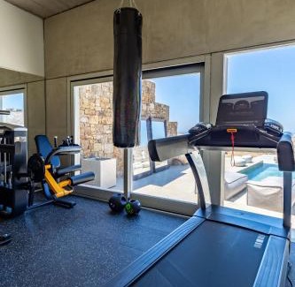 1.4 miles from Elia Beach in Mikonos, Serenity Sky Luxury Villa - Sunset - Private Pool offers accommodations with access to a fitness room. This property offers a private pool, free Wifi, and free private parking. Staff on site can arrange a shuttle service. Offering a terrace and sea views, the spacious villa includes 5 bedrooms, a living room, flat-screen TV, an equipped kitchen, and 5 bathrooms with a walk-in shower. Guests can take in the views of the mountain from the patio, which also has outdoor furniture. For added privacy, the accommodation features a private entrance. There is an on-site bar. There is a garden with a barbecue at this property, and guests can go windsurfing and cycling nearby. Mykonos Windmills is 4.8 miles from the villa, while Little Venice is 4.8 miles from the property. Mykonos Airport is 2.5 miles away, and the property offers a paid airport shuttle service.
