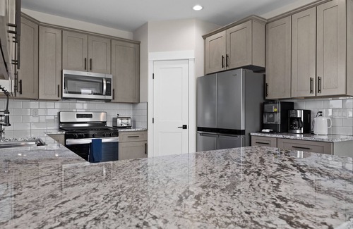 Welcome to Serenity Summit Retreat, a stunning 5-bedroom, 3.5-bathroom new construction home designed for comfort and style. Perfectly blending tranquil vibes with modern elegance, this spacious retreat is ideal for executives, families, groups, or anyone seeking a serene getaway. Clean, crisp, and contemporary, this home boasts high-end finishes, open-concept living, and abundant natural light. Thoughtfully curated interiors with inspired decor, sleek furnishings, and a calming color palette.