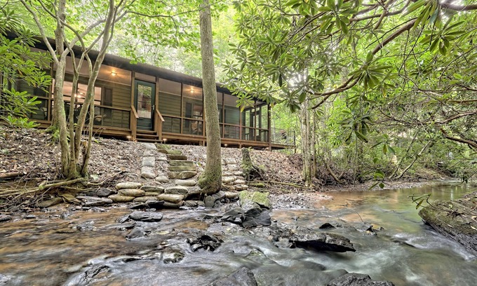 “Serenity Wow!” Cabin on the Creek Close to Town | Cabin in Blairsville