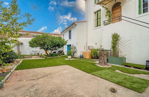 Winemaker's house of 325 m² located in the city center of Lespignan, just 15 minutes from the beaches and tourist sites. You will find two guest rooms with a shared bathroom, accommodating 4 or 5 people. Both 20 m² rooms are equipped with various amenities, one offering additional accessories. All rooms are air-conditioned and have smart TVs. The 160 m² garden features fruit trees, aromatic plants, a vegetable garden, and a barbecue. On the ground floor, a 75 m² wellness area, covered and accessible all year round by reservation, offers a professional therapeutic massage spa, a counter-current swimming spa, an infrared C sauna, table football, billiards, and a large-screen video projector.