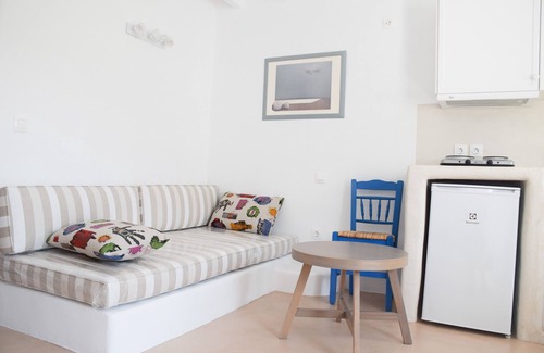 Welcome to one of our 3 Serifos Seaview houses! We offer you a double bedroom, two comfortable single beds, a private bathroom, kitchenette, air-conditioning, washing machine, hot water, 3 large closets, free wi-fi and a cozy balcony with seaview. A modern cycladic, fully-equipped house is ready to satisfy your vacation needs and desires.