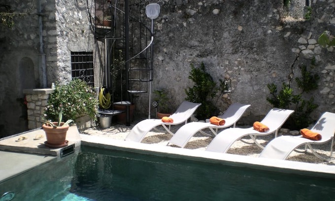 - Large apartment in a medieval stone Court, terrace, great view, pool use
