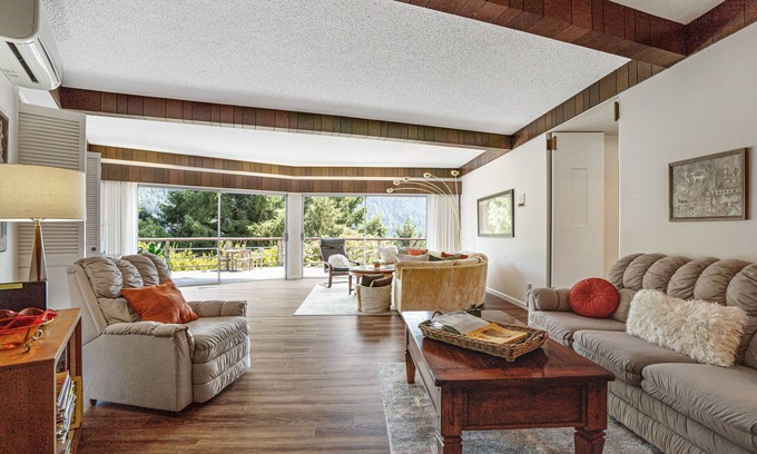 Viewcrest Retro Country Home is the perfect place to come escape the hustle and bustle of the busy work world and city life. The roomy living area offers guests comfort and elegance with its marvelous interior décor and comfortable furnishings. Cozy up to the pellet fireplace or just gaze out the large picture windows and enjoy the heart stopping views. The deck wraps around the entire North, East and Southerly sides of the house with sliding doors into the Living, Master, and Kitchen areas. The BBQ on the deck will make for many outdoor meals awaiting you!
