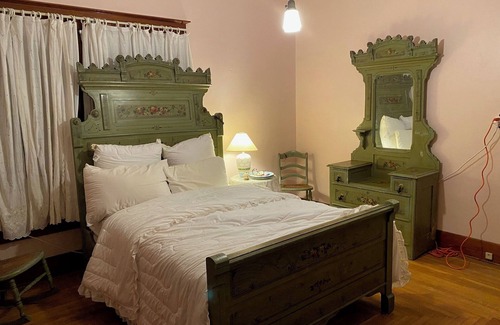 Big farmhouse, small town feel, pet-friendly. This is what I like best about our prairie retreat set in the southwest corner of Missouri a short drive from Branson and Table Rock Lake, Hot Springs, Eureka Springs, Roaring River, and more. The house is a 1920s Craftsman style that has been in my family for four generations and owned by my great-grandmother, grandmother, mother and myself, respectively. Blessed with love and care, you will instantly feel at home in this special place, with its grand rooms and original Craftsman finishes. The welcoming farmhouse style kitchen and back porch opens onto a wide open acre overlooking farms to the west of town. This home is pet friendly, and we welcome yours, including a small fenced area off the back porch for safe exercising. We have a grill and outdoor furniture and other BBQ items for your use. You will have two bedrooms, one-and-a-half baths. A finished attic is available for special family events, with two more bedrooms and a sitting room upstairs.