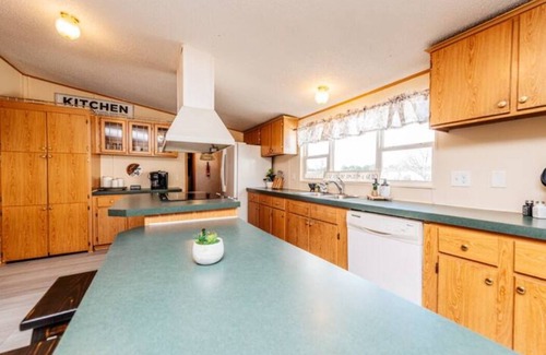 Bring the whole family or crew to this great mobile home with lots of room- huge 5 bedroom 3 full bath in subdivision with tons of space between homes and having over 1/2 an acre of fenced in yard. There are 2 living rooms, gaming room, dining room, Giant kitchen and a total of 10 beds so everyone can have their own! This includes 7 twin beds and 3 queen beds. Set up for large families or crews- this house is perfect! It even has a SECRET ROOM that you will have to stay here to discover.