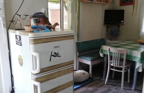 Spacious wooden bungalow in the Marina di Sorbo campsite in Querciolo in Haute-Corse, 30 km south of Bastia, fifteen kilometers from Bastia Poreta airport. , on the eastern plain.