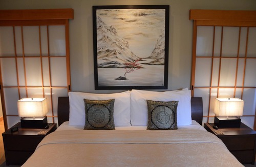 While you're here, you can enjoy all the comforts of home and more, including a jetted bathtub and a refrigerator, as well as free WiFi and a flat-screen TV. Other amenities include premium bedding, towels, slippers, and a DVD player.