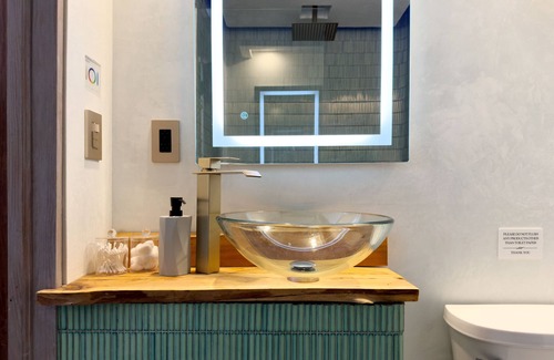 While you're here, you can enjoy all the comforts of home and more, including a rainfall showerhead and free WiFi, as well as a Smart TV and streaming services. Other amenities include premium bedding, down comforters, towels, and an electric kettle.