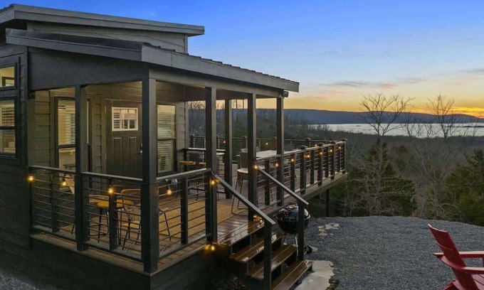 Welcome to Shadowrock, a secluded lake and mountain view luxury tiny home located on 2.5 private acres overlooking Sardis Lake. The home includes over 350 SF of outdoor living space with a firepit and comfortable seating to take in the beautiful view. It is located approximately 2.5 hours from the Dallas, Oklahoma City and Tulsa. Vaulted ceilings & a wall of windows allow for panoramic lake views from almost any angle.