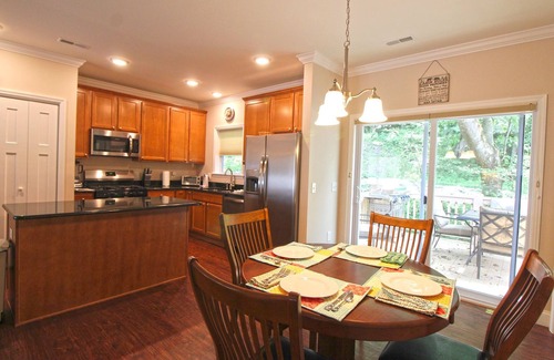 Your experience at Shady Getaway is elevated with an array of exceptional amenities. Enjoy evenings on the spacious deck complete with a hot tub for relaxation under the stars, while the convenient wireless internet keeps you connected throughout your stay. Each rental within Bryson Village promises modern conveniences like flatscreen TVs, gas log fireplaces, and fully stocked kitchens featuring granite countertops and stainless appliances, ensuring that both you and your guests feel right at home. The property offers indoor and outdoor dining spaces, making it easy to host gatherings, and the comfortable furnishings add a personal touch to your wedding accommodations.