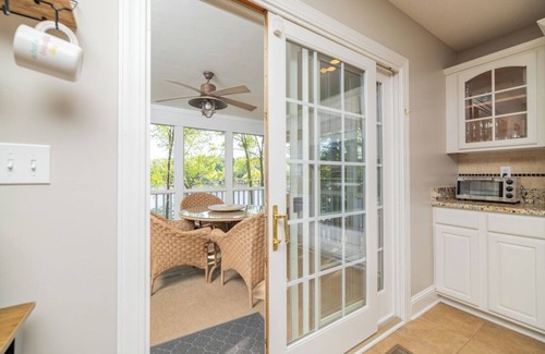 Entertaining reaches new heights at the chic bar nestled in the basement of this Lake Gaston retreat. The stylish space invites guests to unwind and socialize in a cozy ambiance, complete with a lounging area and smart TV. Sip on handcrafted cocktails or pour a glass of your favorite wine as you chat with friends or challenge them to a game. With ample seating and a laid-back atmosphere, the basement bar is the perfect spot to create lasting memories and toast to unforgettable vacations.