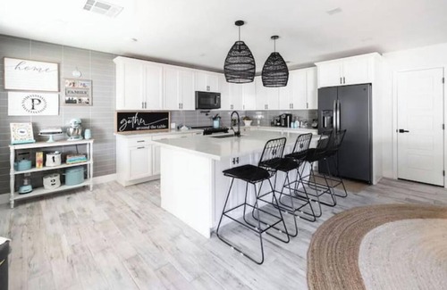 Our 2 bedroom 2.5 bathroom, Office plus Toy room home was just remodeled with plenty of character and custom touches. At ~2000sq ft. our home is spacious enough to include a dedicated Office, Open floor plan with living, dining and kitchen as well as a master with en-suite bathroom and soaker tub, kids room with 4 bunks and crib, Playful toy room and dedicated office. Half bath in the laundry room for convenience. Oh and the outdoor oasis!