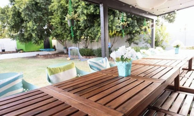 o Large covered patio and oversized table for outdoor dining