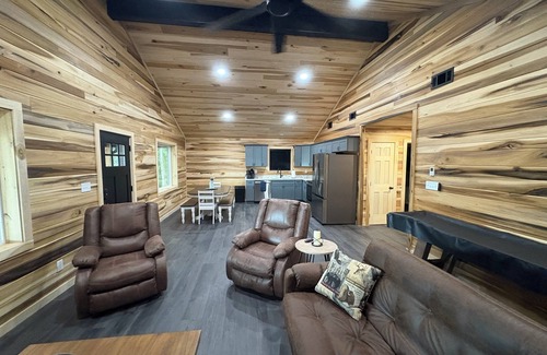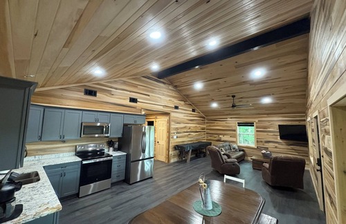 Brand New construction Cabin. Relax at this 2 bedroom, 1 bathroom cabin in the woods. Surround by the Shawnee National forest, you have miles and miles of trails to hike and explore. If you would rather stay home and relax, there is a fully equipped kitchen, TVs in family room and both bedrooms, shuffle board, covered porch with furniture, a fit pit, and a park style grill. Just a 15 minute drive to Golconda - you are close enough to civilization but far enough away to enjoy peace and quiet