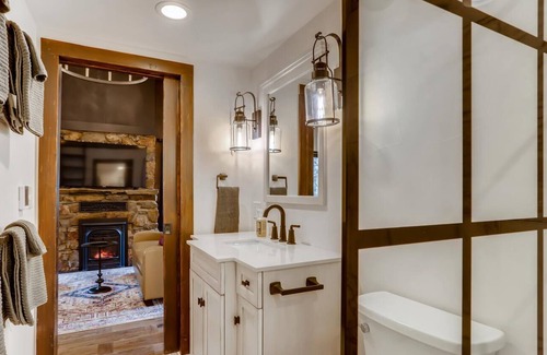 Vibrant & chic mountain cabin perfect for 2 at Water & Stone Retreat in Idaho Springs Colorado! Featuring modern amenities, tons of windows & natural light, private office/workspace, a gas fireplace, heated bathroom floor, plus a beautiful outdoor area set up on the creek w/ lounge chairs & dining table, this cabin is absolutely fabulous. Located just 20 mins from the ski slopes, 35 mins from Denver & only 5 minutes from downtown Idaho Springs.