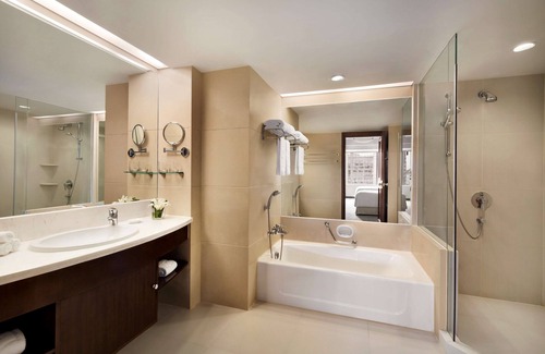 Shangri-La Qingdao offers 686 accommodations with minibars and safes. Beds feature down comforters and premium bedding. A pillow menu is available. 37-inch LCD televisions come with premium satellite channels. Bathrooms include separate bathtubs and showers, bathrobes, slippers, and complimentary toiletries.