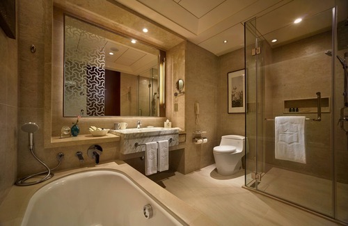 Shangri-La Tangshan offers 301 air-conditioned accommodations with DVD players and minibars. Each accommodation is individually furnished and decorated. Beds feature down comforters and premium bedding. A pillow menu is available. 40-inch flat-screen televisions come with cable channels and video-game consoles. Refrigerators and coffee/tea makers are provided. Bathrooms include separate bathtubs and showers with jetted bathtubs and rainfall showerheads. Bathrooms are also outfitted with bathrobes, slippers, and designer toiletries.