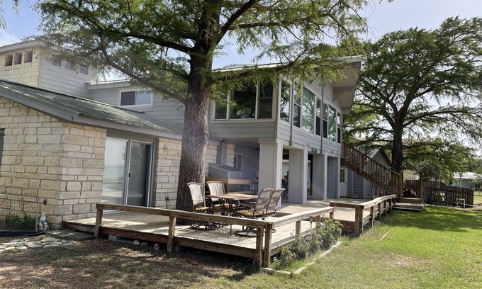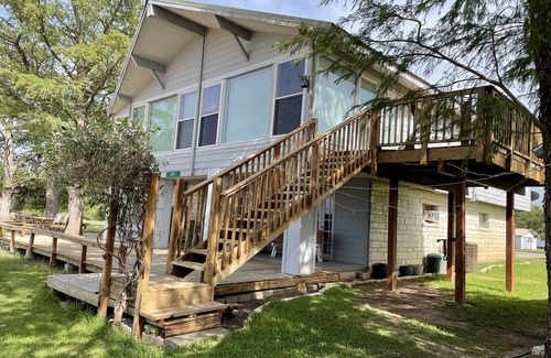Want to get away from it all? Lake Buchanan is full!! Come enjoy time with your family and friends at this spacious home with great views. Enjoy your coffee as the sunrises or your favorite beverage as it sets over the lake. Plenty of room in the kitchen to cook or enjoy BBQing on the large deck. Two living areas with lots of space to hang out. Main kitchen and living are upstairs along with two bedrooms. The downstairs living is a game room with daybeds and trundles as well as two additional bedrooms. The beach is basically at your back door with steps leading into the water. Bring your floats and relax! We'd love to have you at our home on Lake Buchanan.