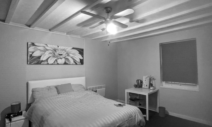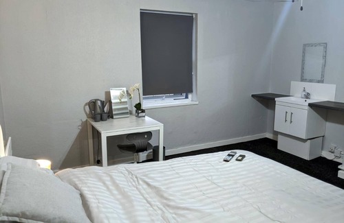 This modern studio flat is situated in the heart of Stourbridge Town Centre, within walking distance from supermarkets, restaurants and other local amenities. The studio flat includes 1 double bed, a flat-screen TV with Netflix & all free view channels, free WiFi, a remote controlled ceiling fan with dimmable lights, hairdryer, iron, table and chair, mirrored wardrobe and a sink. There is a shared bathroom with a shower; and a shared kitchen which is equipped with a microwave, toaster, fridge, washing machine and tumble dryer. Explore the beauty of Mary Stevens park or visit The White House Cone Museum of Glass. Go-Karting and trampolining can also be enjoyed nearby. West Midlands Safari Park is just a 15 minutes drive away. Birmingham is 11.2 miles from the accommodation, while Stratford-upon-Avon is 26.1 miles away. Birmingham Airport is 17.4 miles away from the property.