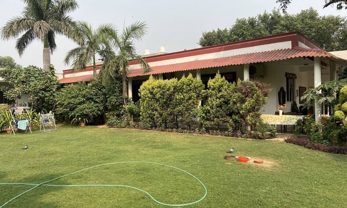 6 private rooms’ on a Farm. Owners live also on a farm (separate entrance). It’s a green house farm with birds chirping, peacocks in the morning & surrounded by tall trees ... No place like this to be found in Delhi. Close to Ghitorni/Arjungarh Metro station. Most of the guest staying on sight are from Israel, Poland, UK, USA, Netherlands, Spain. (3 rooms with TV, 3 rooms no TV). Using garden for party/events has an additional cost which need to be agreed with host prior to booking.