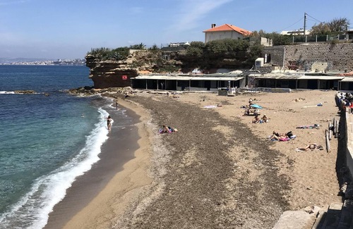 On a popular public beach, deserted in the morning whose brewed and limpid water calls for swimming or surfing in high winds (the most technical spot in Marseille)
