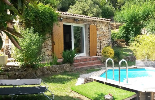 On a closed property of 5000 m2, this pretty little stone cottage of 30 m2 with parking and pool TOTALLY private wood is composed of a bed 140, equipped kitchen (microwave, coffee filter, toaster ...) , TV (free WIFI). From a very small bathroom with W. C. (hair dryer) Outside dining area with barbecue, deckchairs. For 2 people MAXI, without animals. Non-smoking interior. Sheets, pillowcases, tea towels and towels are not provided.