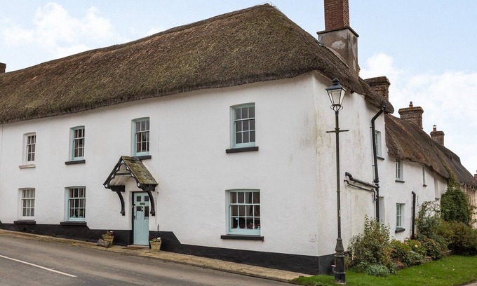 Bathroom: Bath With Shower Over, Heated Towel Rail, Toilet. Oil central heating, electricity, bed linen, towels and Wi-Fi included. Initial logs for wood burner included. Welcome pack. External gym with exercise equipment and 50" Sky TV (basic package) with Netflix. Enclosed, lawned rear garden with patio, garden furniture and summerhouse. Private parking for 2 cars; additional on-road parking. No smoking. Please note: There is an honesty box if you use any of the larder supplies. There are uneven floors and small steps throughout the property.. Sheepwash Square House located in a quaint North Devon village is a 1600’s Grade II listed thatched house accommodating up to twelve guests.