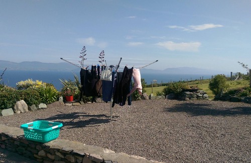 A Grá Mo Croí (My Hearts Desire) – is a traditional Irish cottage in Roads/Kells. At the end of a small drive it is set against the backdrop of the mountains offering panoramic views of Dingle Bay, the Dingle peninsula, the Blasket Islands and the Atlantic Ocean. There are three bedrooms. One with a double bed and an en suite bathroom on the ground floor. From the two bedrooms on the first floor - one has a large single bed and one has two single beds. There is a bathroom on the upper floor as well.