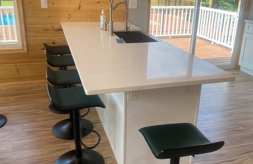 This one-of-a-kind vacation rental features five spacious bedrooms, four modern bathrooms, and multiple living areas to accommodate your guests comfortably. Enjoy cooking together in the full gourmet kitchen or gather around the outdoor fire pit to make lasting memories. The property is equipped with a lavish hot tub, a two-person jacuzzi, and a sparkling swimming pool to help you unwind after the festivities. Indulge your guests with games like cornhole and foosball, and host gatherings on the expansive wrap-around deck, where everyone can soak in the serene atmosphere.