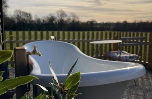 Shepherd Hut in Private Meadow With Outdoor Bath | Cabin in Langport