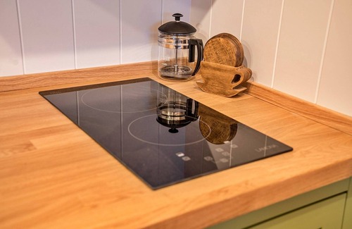 The Shepherd's Hut at Northcombe Farm offers a perfect glamping retreat, combining the charm of traditional design with modern amenities. Located on a picturesque Devonshire farm, this hut provides a cozy and rustic escape, while offering comforts such as central heating, a walk-in shower, and a kitchenette. The hut is ideally situated by a serene lake with stunning views across the countryside, making it a peaceful hideaway for those looking to relax or explore the natural surroundings. Guests will enjoy a well-designed open-plan space, including a double bed, a kitchenette with a dining bar, and a bathroom equipped with a walk-in shower and flushing WC. The sheltered outdoor seating area under the barn roof provides an ideal spot to unwind with a hot drink or glass of wine, even on rainy days. The farm also offers opportunities for fishing in the lake and equestrian activities, while Dartmoor National Park, perfect for hiking and cycling, is just a short drive away. This pet-friendly retreat offers all the conveniences needed for a relaxing stay, including an electric car charging point. It’s a wonderful choice for those looking for an intimate and comfortable glamping experience in the heart of nature.