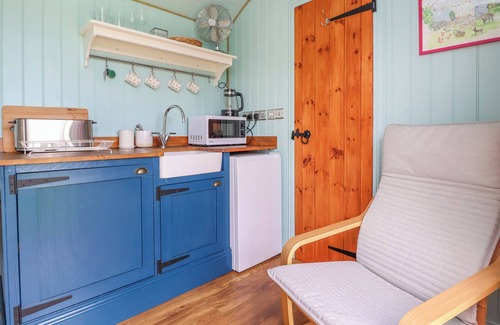 Shepherd's Hut, a single-storey shepherd's hut consists of a kitchen with combi microwave/oven, toaster, and fridge, a dining room with dining seating for two, and a sitting room with Smart TV with Amazon Fire Stick. The bedroom is a double, along with a shower room. Outside, there is an enclosed front lawn with a fire pit and picnic table and off-road parking. Two well-behaved pets welcome. Sorry, no smoking at this property. Guests can find a shop within 3.5 miles and a pub within 3.6 miles. WiFi, fuel, power, starter pack for logs for firepit, bed linen and towels are all included in the price. Find your perfect escape at Shepherd's Hut.
