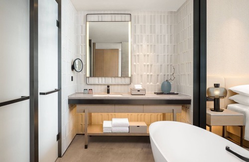 Sheraton Beihai Resort offers 218 air-conditioned accommodations with safes and complimentary bottled water. Rooms open to balconies. Beds feature down comforters. Satellite television is provided. Bathrooms include separate bathtubs and showers with rainfall showerheads, bathrobes, complimentary toiletries, and hair dryers. Additionally, rooms include irons/ironing boards and blackout drapes/curtains. Change of towels and change of bedsheets can be requested. Cribs/infant beds (complimentary) are also available. A nightly turndown service is provided and housekeeping is offered on request.