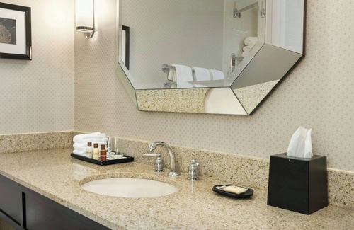 The Sheraton Charlotte Airport Hotel features a variety of thoughtful amenities designed to make your stay seamless and enjoyable. Enjoy relaxing moments at the indoor and outdoor pools, or unwind at the bar/lounge after a day of wedding festivities. Each of the 222 accommodations boasts pillowtop beds with luxurious bedding, 32-inch flat-screen televisions, and well-appointed bathrooms. Additionally, the hotel offers complimentary WiFi, free self-parking, a fitness center, and an onsite restaurant, ensuring that both you and your guests have everything you need during your memorable event.