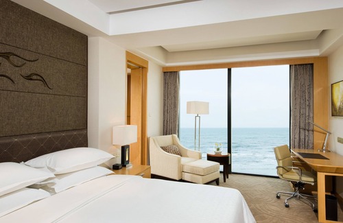 Sheraton Yantai Golden Beach Resort offers 350 air-conditioned accommodations, which are accessible via exterior corridors and feature DVD players and minibars. Select Comfort beds feature down comforters and premium bedding. LCD televisions come with premium cable channels. Bathrooms include separate bathtubs and showers with deep soaking bathtubs and rainfall showerheads. Bathrooms are also outfitted with bathrobes, slippers, and designer toiletries.