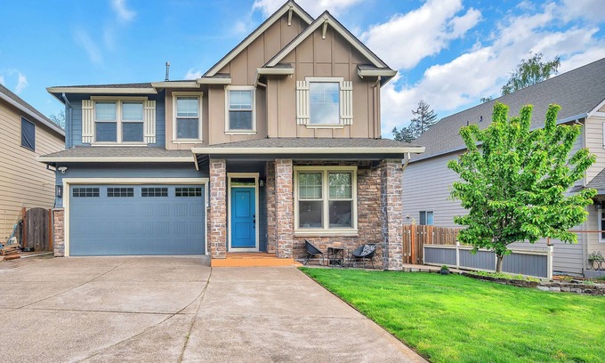 Your perfect Oregon escape awaits at this stylish, family-friendly retreat in the heart of charming Sherwood. Just steps from downtown shops, cozy cafes, and scenic trails, this spacious 5-bedroom home offers the ideal blend of comfort, connection, and adventure — the perfect base for your next getaway.