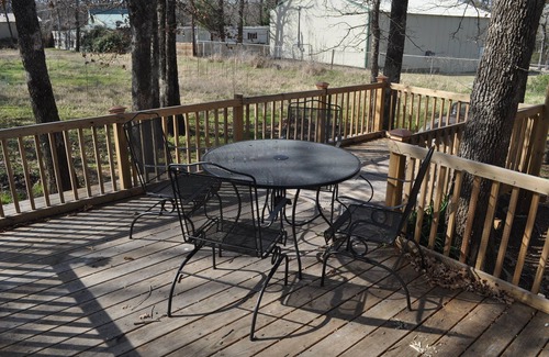 Fully equipped kitchen. Large rear deck shaded by large oak trees make for pleasant outdoor dining. Parking for 4 vehicles, including 2-car carport. HDTV with local broadcast channels. DVD player with large selection of classic family-friendly movies.