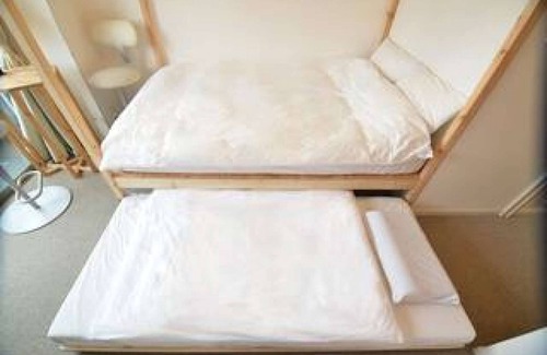 There is a semi-double bed, and a slide-out single mattress stored underneath.