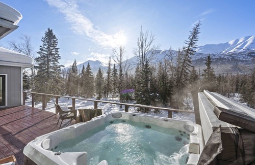 Escape to "Shiloh and Harmony" - A Modern Oasis on 1.3 Acres with Unobstructed Mountain Views! Immerse yourself in the breathtaking Chugach Mountain vistas from your private deck and hot tub. Witness the aurora, meteor showers, and wildlife. Enjoy ultimate relaxation by the fireplace, snuggled under a cozy blanket. Bedrooms feature blackout curtains for restful sleep. Secluded yet accessible, it's your perfect getaway!