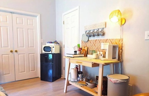 The unit has a private entrance (and porch) with your own designated parking spot on the driveway. Come and go as you wish using the Smart lock access.