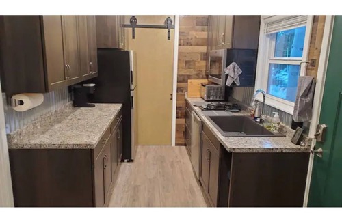 Shipping container cabin forest retreat for 1-4 is located in Ponderosa. Shipping container cabin forest retreat for 1-4 provides accommodation, featuring Kitchen, Parking, Balcony/Terrace, among other amenities. This Cabin features Kitchen, Parking, Balcony/Terrace, to make your stay a comfortable one.